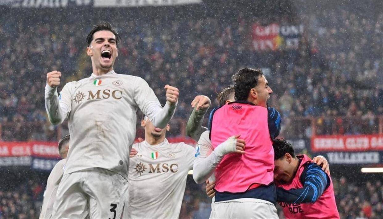 最终,十人那不勒斯在客场3比2绝杀了热那亚,带走了一场难以置信的胜利。 霍伊伦是这场胜利的最大功臣,他不仅打入扳平比分的进球,更在最后时刻罚入了制胜点球。 麦克托米奈的传射建功,尤其是那脚石破天惊的世界波,同样至关重要。